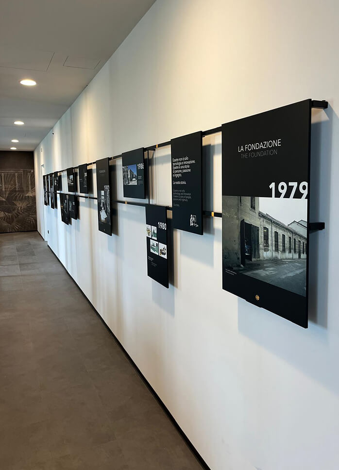 Ideazione concept e Art Direction - Progetto grafico e di interior design - Carte da parati - Illuminazione - Comunicazione - Timeline aziendale - Evento